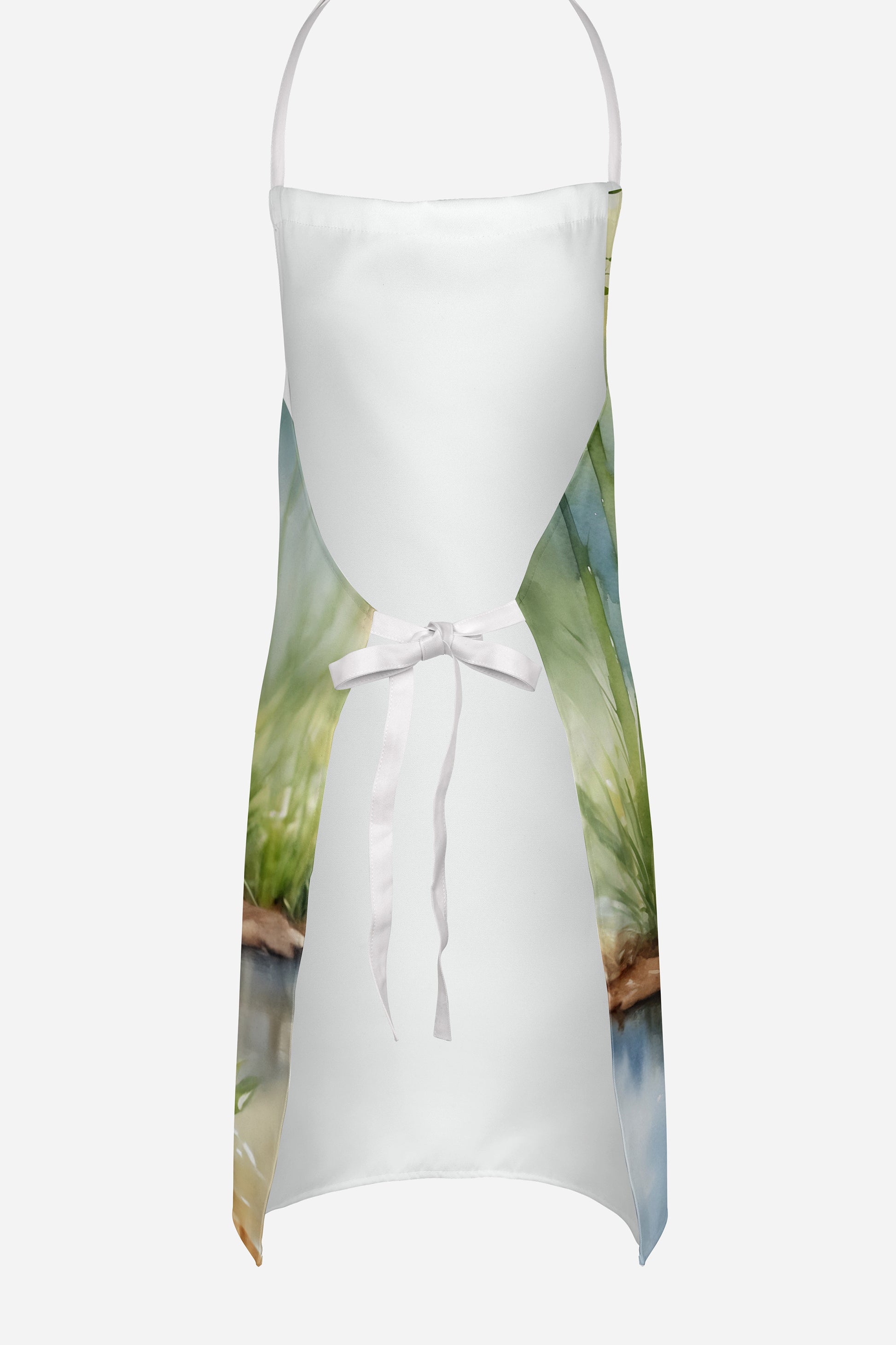 Apron featuring breed specific Sandhill Crane artwork. Elevate your cooking, baking, and grilling experiences with our versatile Kitchen or BBQ Apron. This Bib Style apron isn't just limited to culinary activities - it also serves as an excellent baking apron, artist apron, server apron, gardening apron, or even a dog grooming apron. The apron showcases vibrant full-color artwork contributed by one of our talented artists, bringing a dash of style to your daily tasks. With dimensions of approximately 27"W x 30"H, it provides ample coverage to protect your clothing from spills and splashes. Our apron is meticulously crafted from 100% Ultra Spun Polyester, known for its durability and lightweight nature. The apron comes with white tie straps, ensuring a comfortable and adjustable fit for all. It's a perfect choice for kitchen apron enthusiasts, whether you are a woman or a man. Designed for easy maintenance, this apron is fully machine washable. The quick-drying polyester material actively reduces staining, keeping your apron looking fresh and new for longer. Our beautifully designed apron isn't just a functional kitchen accessory - it's a fashion statement in the culinary world!