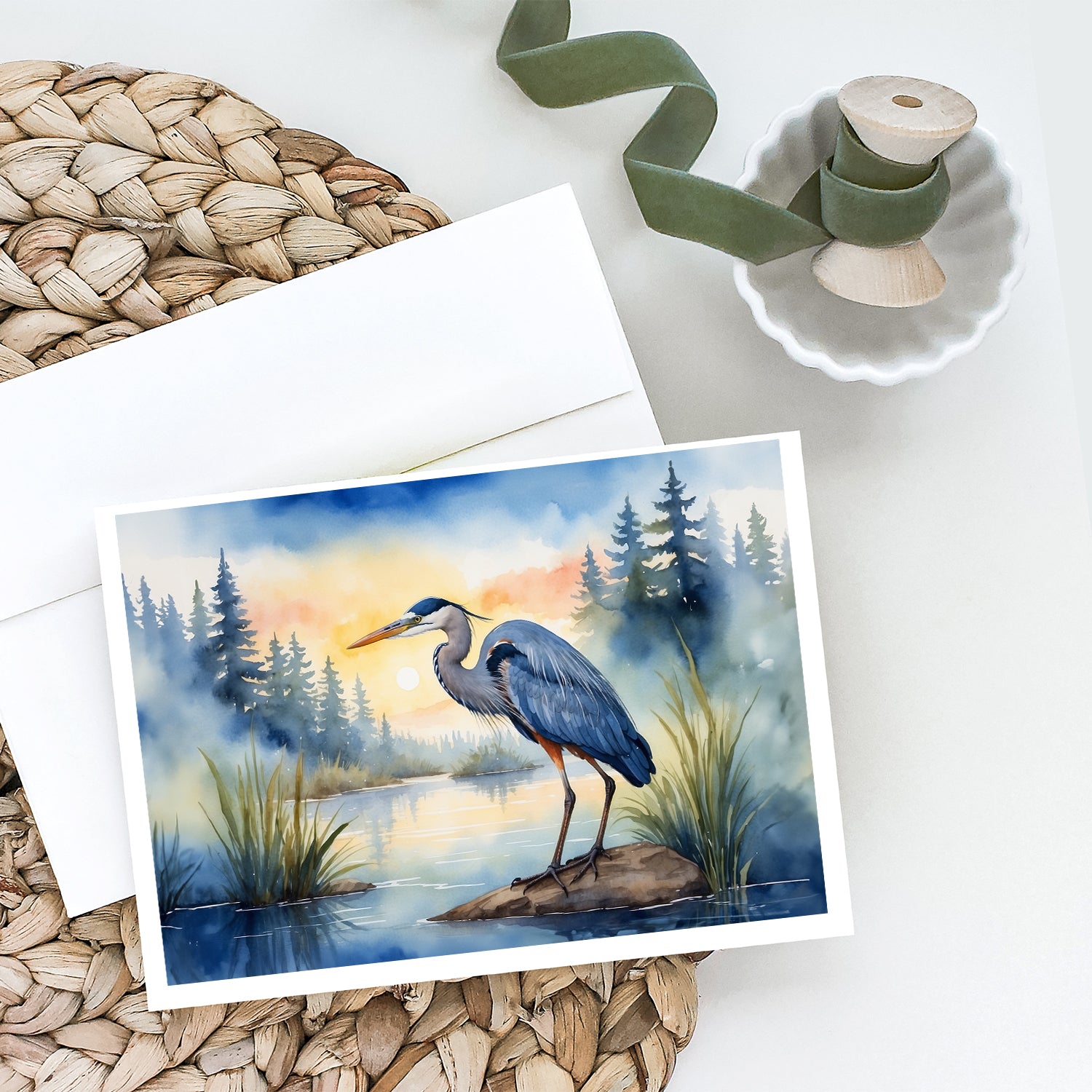 Blue Heron Emerging as the day fades Greeting Cards Pack of 8