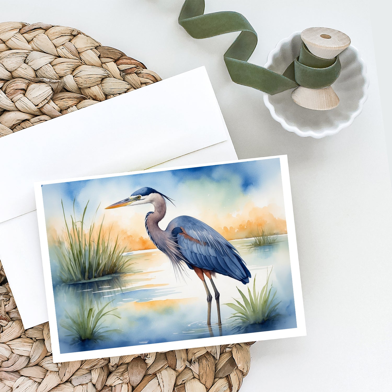 Greeting Cards Pack of 8 featuring breed specific Blue Heron artwork. Celebrate special moments with Caroline's Treasures Printed Greeting Card Pack. This pack includes eight beautifully folded 5x7 cards, accompanied by eight matching white envelopes. With blank interiors, these cards provide ample space for your personalized messages and heartfelt holiday greetings. Each card features captivating full-color artwork, meticulously printed in our facility on high-quality 80 lb cover stock or 216 GSM. The super smooth finish of the white cards enhances the visual impact of the artwork, creating a truly stunning presentation. Designed by our talented in-house artists or licensed artists, the artwork on these cards showcases their creativity and attention to detail. From vibrant illustrations to captivating designs, each card tells its own unique story. Whether it's for birthdays, anniversaries, holidays, or any special occasion, Caroline's Treasures Greeting Card Pack is the perfect way to convey your heartfelt sentiments. Share joy, love, and warm wishes with these exquisite cards and make every moment unforgettable.