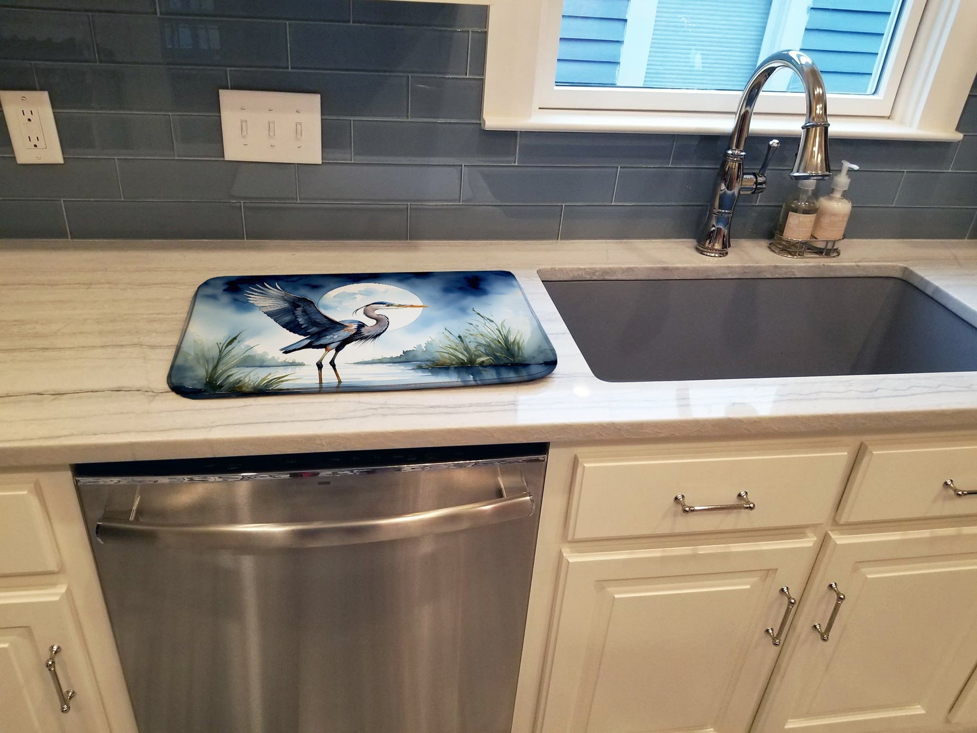 Blue Heron Under the Moonlight Dish Drying Mat