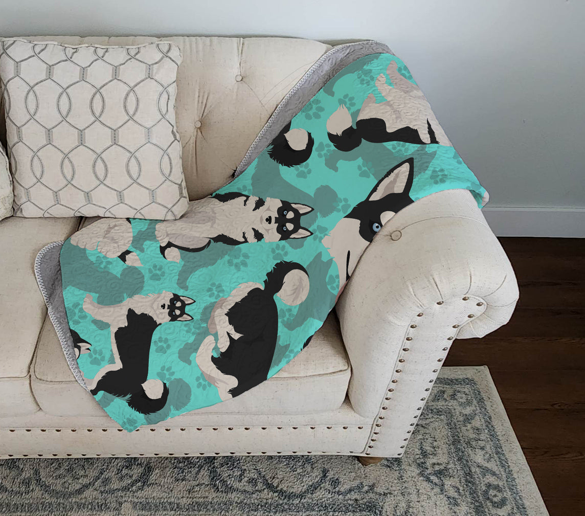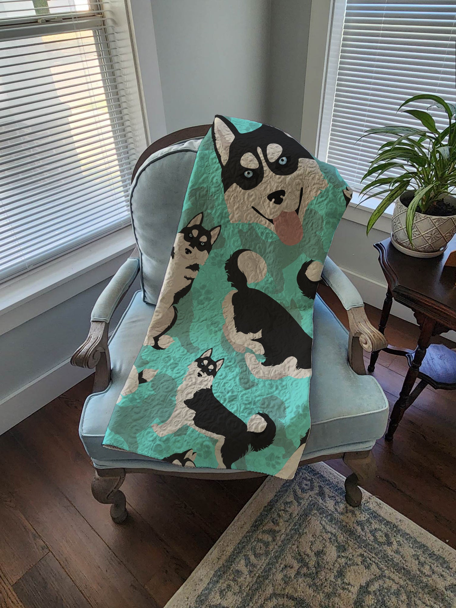 Quilted Blanket 50x60 featuring breed specific Siberian Husky artwork. Our quilted throw blanket is a must-have for anyone who values Form as well as Function! It measures 50 inches by 60 inches and is trimmed with a whip stitch. This heavier blanket is sure to keep away any draft or breeze without causing you to overheat. Use it as an accent piece for furniture, wrap your child in its comforting warmth, keep your pet calm on visits to the vet's office, or use it as an extra layer of softness for any crib or kennel. Here at Caroline's Treasures, we know that some dogs love to share sleeping accommodations with their favorite humans; This blanket makes a great coverlet for the foot of your bed so your four-legged companion has a warm, soft area to snooze on all night without getting your bedding dirty over time. When the blanket does get too many pawprints on it, simply throw it in the wash and follow the care instructions on the tag to restore it to like-new condition. This blanket is made of 67% Polyester and 33% Cotton to ensure durability and comfort. Filled with 100% Cotton and quilted, it does an excellent job at keeping the chill at bay. This is from Caroline's Treasures Dogs category of products.