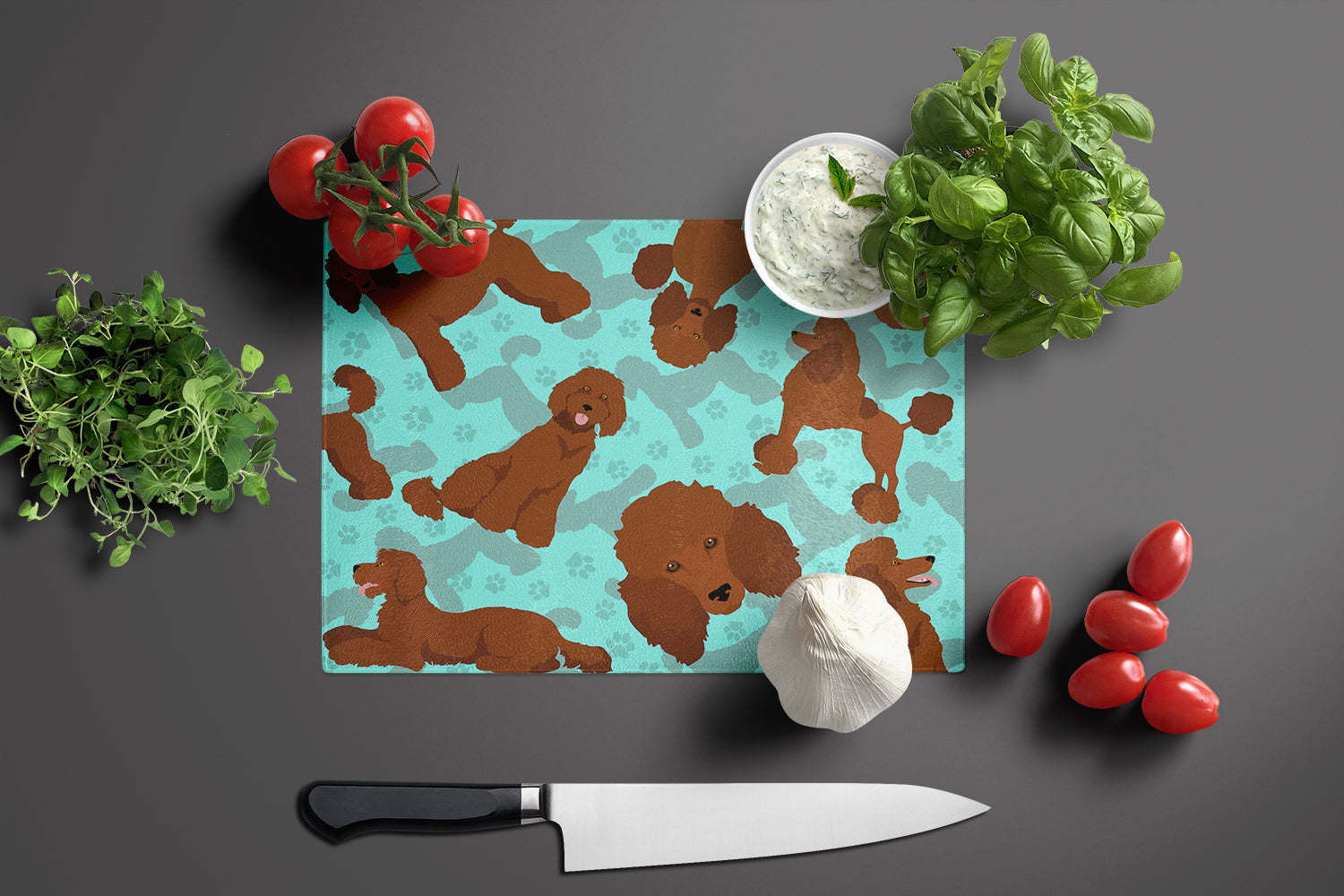 Chocolate Standard Poodle Glass Cutting Board Large
