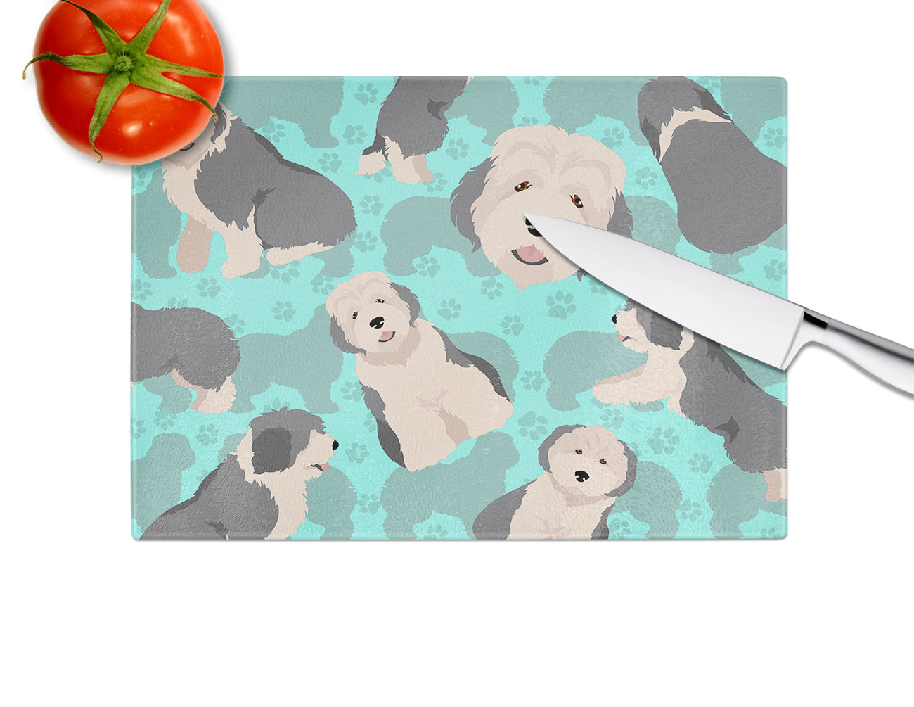 Glass Cutting Board Large featuring breed specific Old English Sheepdog artwork. Large Tempered Glass Cutting Board from Caroline's Treasures colorful kitchen product line is heat resistant and should be hand wash only. This chopping board is bright and colorful. This cutting board is made of tempered glass. These unique cutting boards feature artwork from some of your favorite artists. The Board measures 15 inches high and 12 inches long. They will beautify and protect your counter top. They are heat resistant, non skid feet, and virtually unbreakable! The corners are rounded to help protect the board. Feet bumpers are included to keep the cutting board in place while in use. Cutting boards are printed and assembled in the United States.