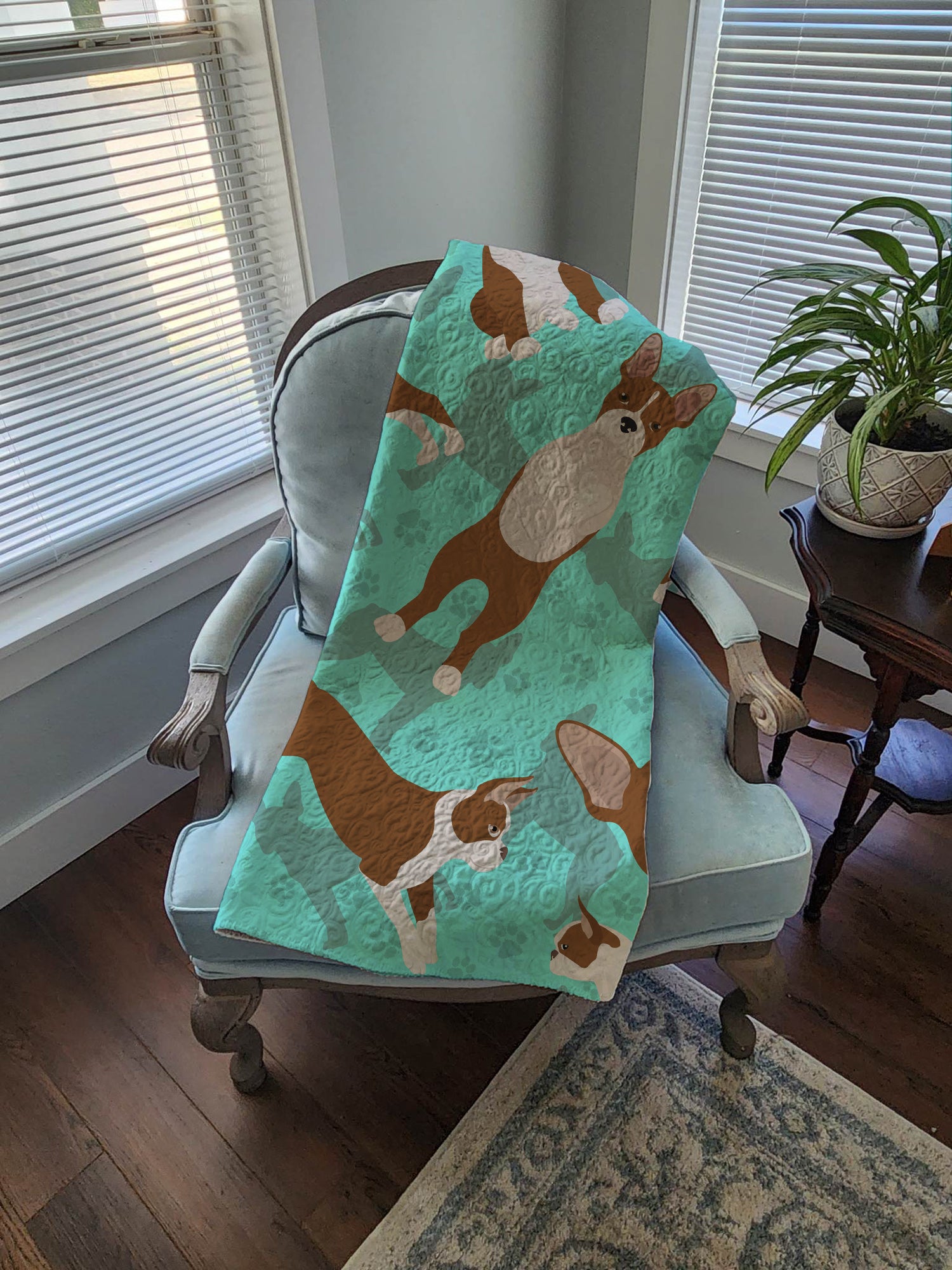 Red Boston Terrier Quilted Blanket 50x60