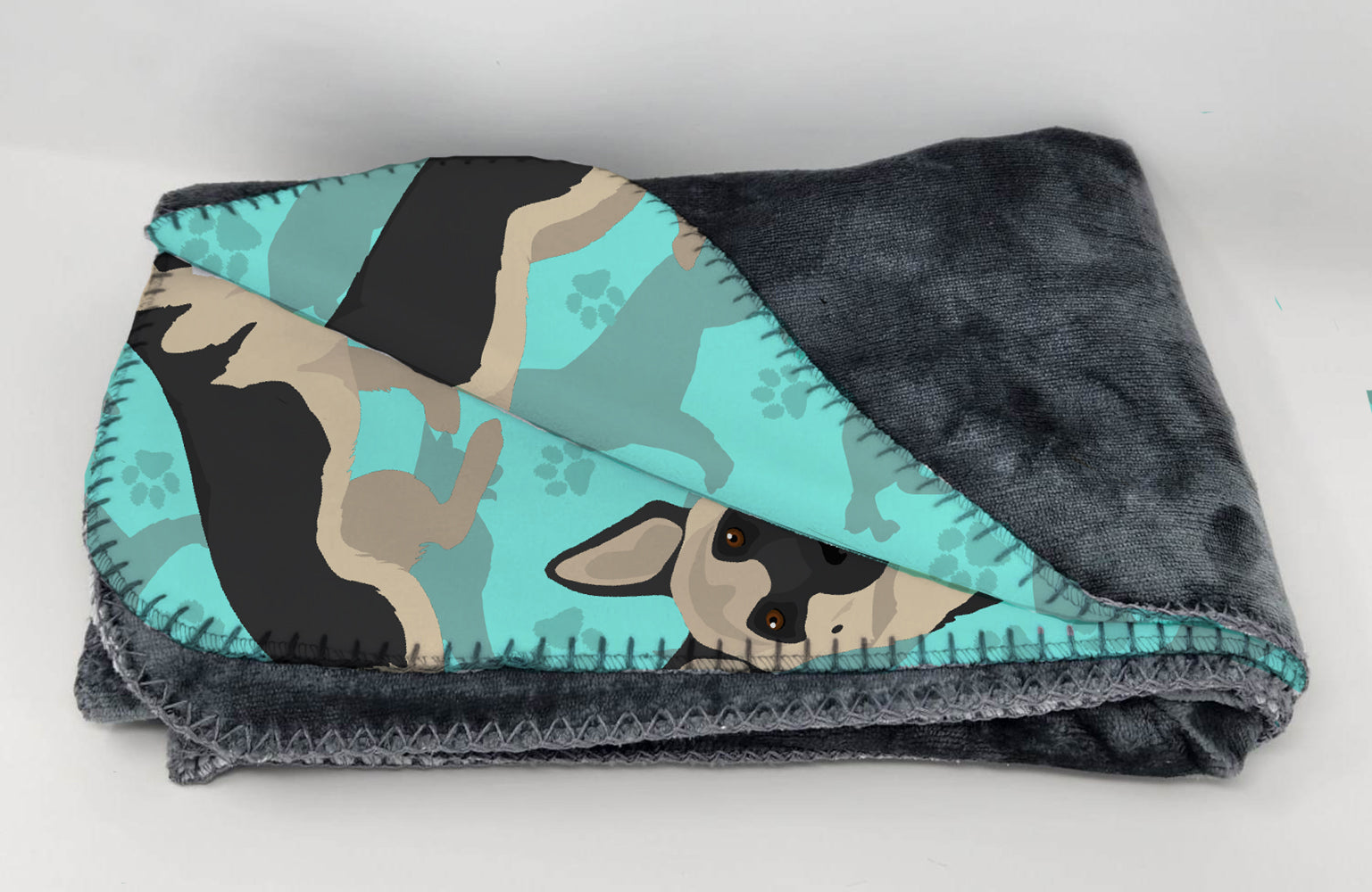 Black and Silver German Shepherd Soft Travel Blanket with Bag