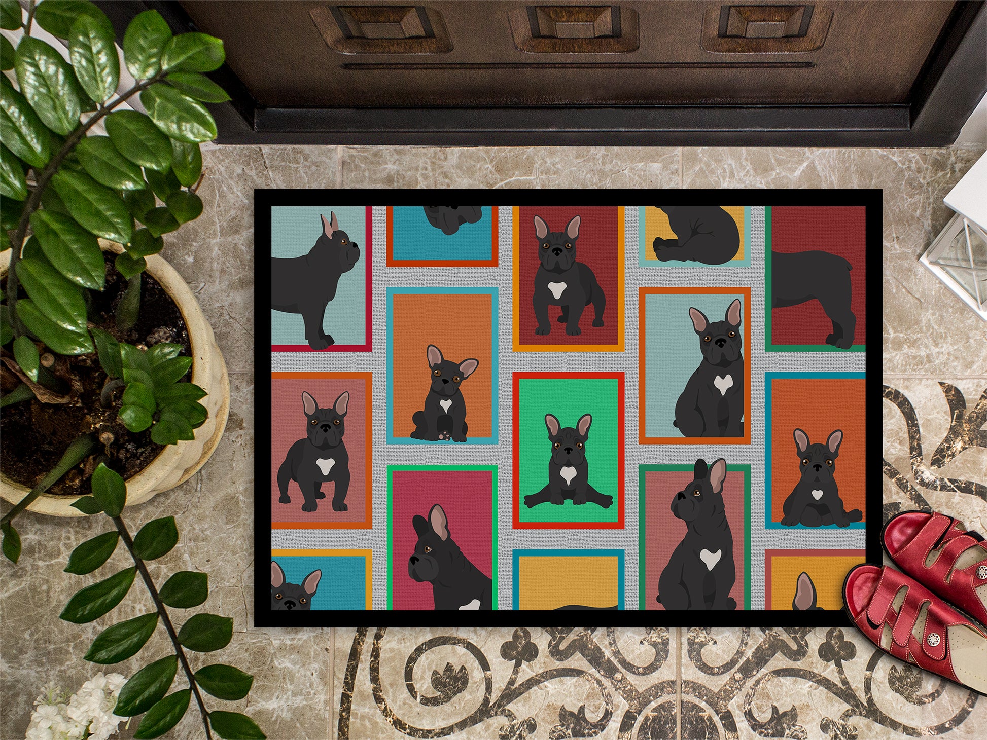 Lots of Black French Bulldog Doormat