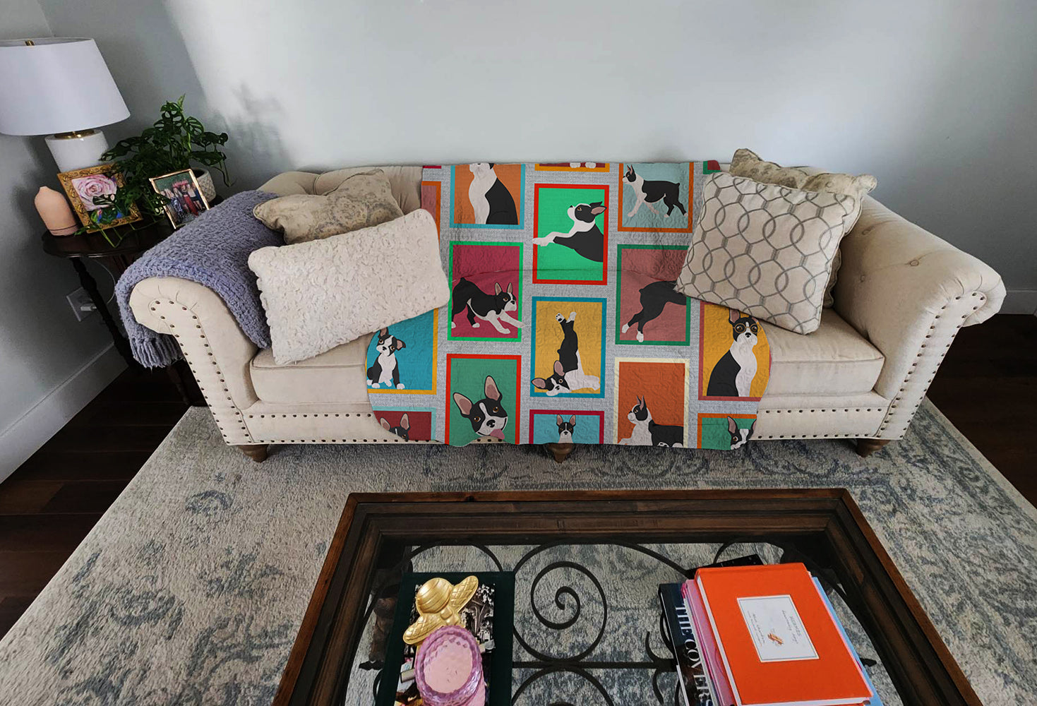 Quilted Blanket 50x60 featuring breed specific Boston Terrier artwork. This Quilted Blanket 50x60 is from Caroline's Treasures collection Lots of Dogs. Our quilted throw blanket is a must-have for anyone who values Form as well as Function! It measures 50 inches by 60 inches and is trimmed with a whip stitch. This heavier blanket is sure to keep away any draft or breeze without causing you to overheat. Use it as an accent piece for furniture, wrap your child in its comforting warmth, keep your pet calm on visits to the vet's office, or use it as an extra layer of softness for any crib or kennel. Here at Caroline's Treasures, we know that some dogs love to share sleeping accommodations with their favorite humans; This blanket makes a great coverlet for the foot of your bed so your four-legged companion has a warm, soft area to snooze on all night without getting your bedding dirty over time. When the blanket does get too many pawprints on it, simply throw it in the wash and follow the care instructions on the tag to restore it to like-new condition. This blanket is made of 67% Polyester and 33% Cotton to ensure durability and comfort. Filled with 100% Cotton and quilted, it does an excellent job at keeping the chill at bay. This is from Caroline's Treasures Dogs category of products.