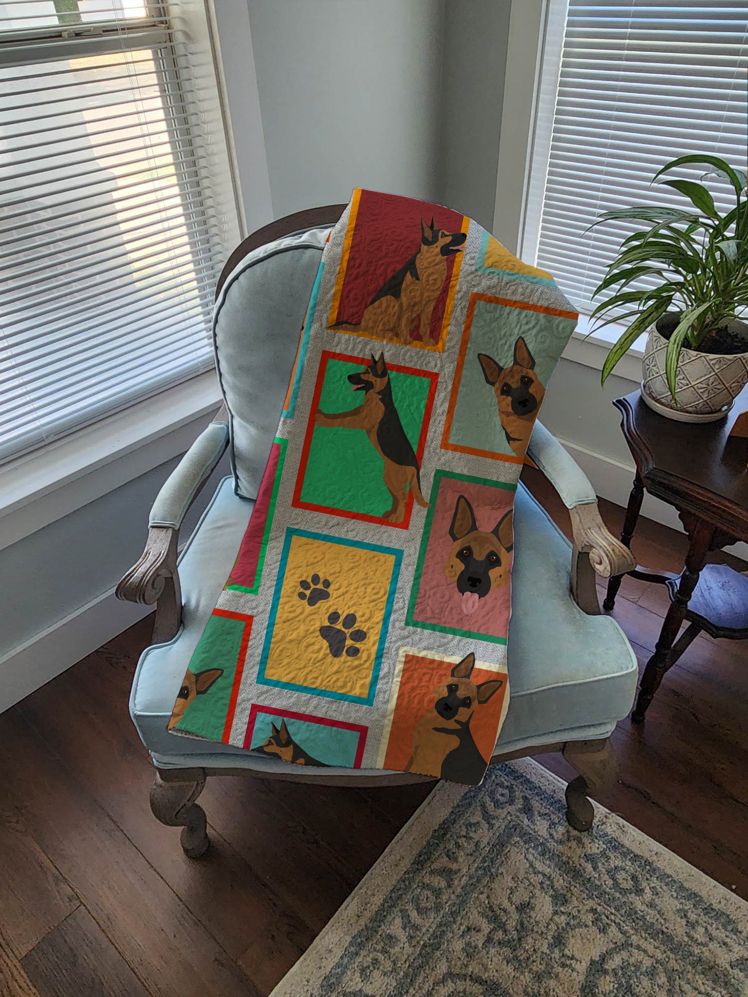 Quilted Blanket 50x60 featuring breed specific German Shepherd artwork. This Quilted Blanket 50x60 is from Caroline's Treasures collection Lots of Dogs. Our quilted throw blanket is a must-have for anyone who values Form as well as Function! It measures 50 inches by 60 inches and is trimmed with a whip stitch. This heavier blanket is sure to keep away any draft or breeze without causing you to overheat. Use it as an accent piece for furniture, wrap your child in its comforting warmth, keep your pet calm on visits to the vet's office, or use it as an extra layer of softness for any crib or kennel. Here at Caroline's Treasures, we know that some dogs love to share sleeping accommodations with their favorite humans; This blanket makes a great coverlet for the foot of your bed so your four-legged companion has a warm, soft area to snooze on all night without getting your bedding dirty over time. When the blanket does get too many pawprints on it, simply throw it in the wash and follow the care instructions on the tag to restore it to like-new condition. This blanket is made of 67% Polyester and 33% Cotton to ensure durability and comfort. Filled with 100% Cotton and quilted, it does an excellent job at keeping the chill at bay. This is from Caroline's Treasures Dogs category of products.
