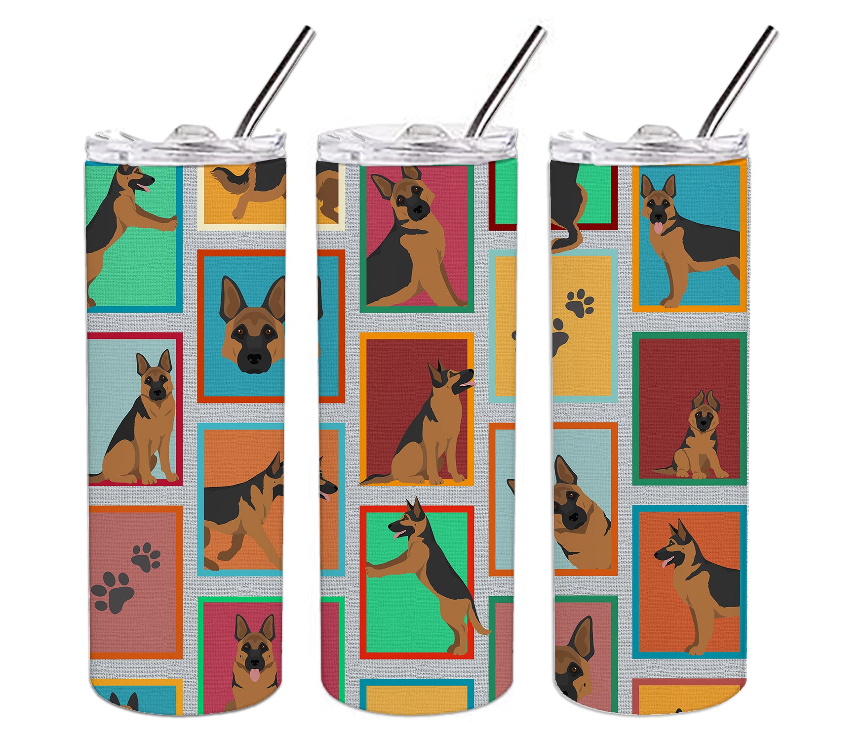 Stainless Steel Skinny Tumbler featuring breed specific German Shepherd artwork. Elevate your hydration experience with our Decorative Stainless Steel 20 oz Skinny Tumbler from Caroline's Treasures. This vacuum-insulated, double-walled travel mug is designed to keep your beverages hot or cold for prolonged periods, making it perfect for your coffee, tea, or cocktails. Its sleek and easy-to-grasp design, complemented by the vibrant, top-to-bottom artwork, makes it a stylish accessory for both men and women. Equipped with a secure, slide-open lid, you can enjoy your drinks without worrying about spills, while the included reusable metal straw contributes to reducing plastic use and promoting sustainability. Crafted with quality stainless steel, the tumbler is 100% BPA and Phthalate free, ensuring a safe, non-toxic experience with every sip. Not just functional, this skinny tumbler, complete with gift box, serves as a thoughtful gift for women, mothers, or any loved one. Enjoy your favorite beverages on the go in style, while making a positive impact on the environment. Remember, it's not just a drinkware, it's a lifestyle accessory! Please note: For optimum longevity, hand washing is recommended.