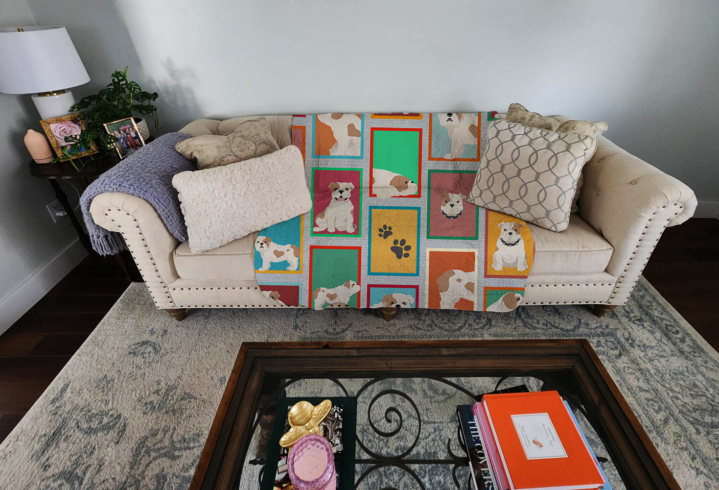 Lots of Piebald English Bulldog Quilted Blanket 50x60