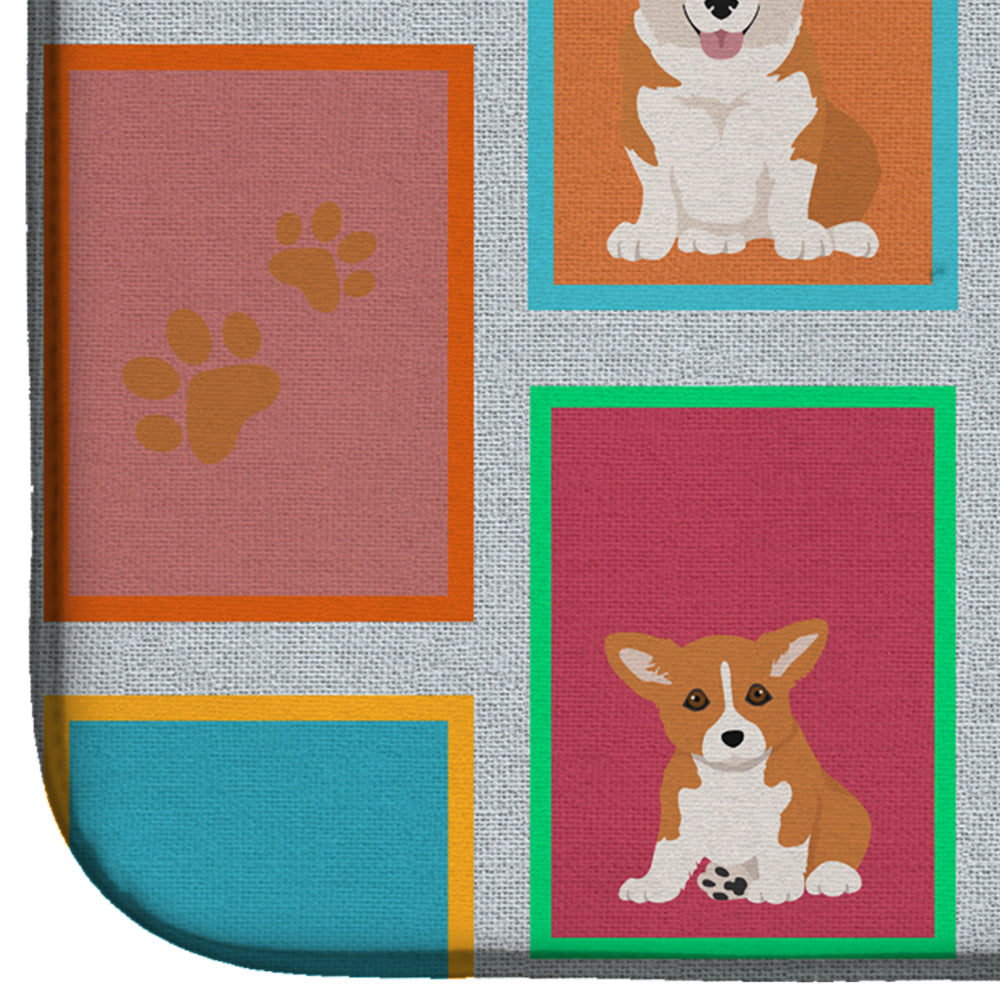 Lots of Red and White Pembroke Corgi Dish Drying Mat
