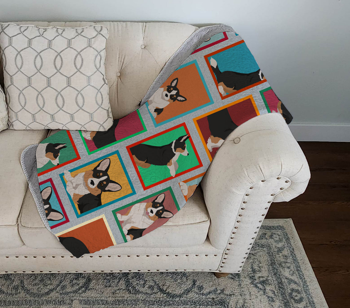 Lots of Tricolor Cardigan Corgi Quilted Blanket 50x60