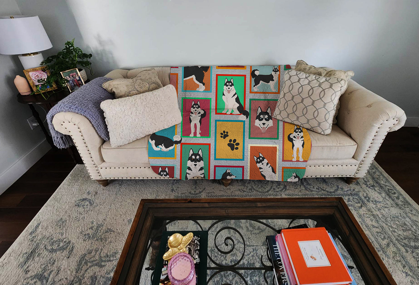 Quilted Blanket 50x60 featuring breed specific Siberian Husky artwork. This Quilted Blanket 50x60 is from Caroline's Treasures collection Lots of Dogs. Our quilted throw blanket is a must-have for anyone who values Form as well as Function! It measures 50 inches by 60 inches and is trimmed with a whip stitch. This heavier blanket is sure to keep away any draft or breeze without causing you to overheat. Use it as an accent piece for furniture, wrap your child in its comforting warmth, keep your pet calm on visits to the vet's office, or use it as an extra layer of softness for any crib or kennel. Here at Caroline's Treasures, we know that some dogs love to share sleeping accommodations with their favorite humans; This blanket makes a great coverlet for the foot of your bed so your four-legged companion has a warm, soft area to snooze on all night without getting your bedding dirty over time. When the blanket does get too many pawprints on it, simply throw it in the wash and follow the care instructions on the tag to restore it to like-new condition. This blanket is made of 67% Polyester and 33% Cotton to ensure durability and comfort. Filled with 100% Cotton and quilted, it does an excellent job at keeping the chill at bay. This is from Caroline's Treasures Dogs category of products.