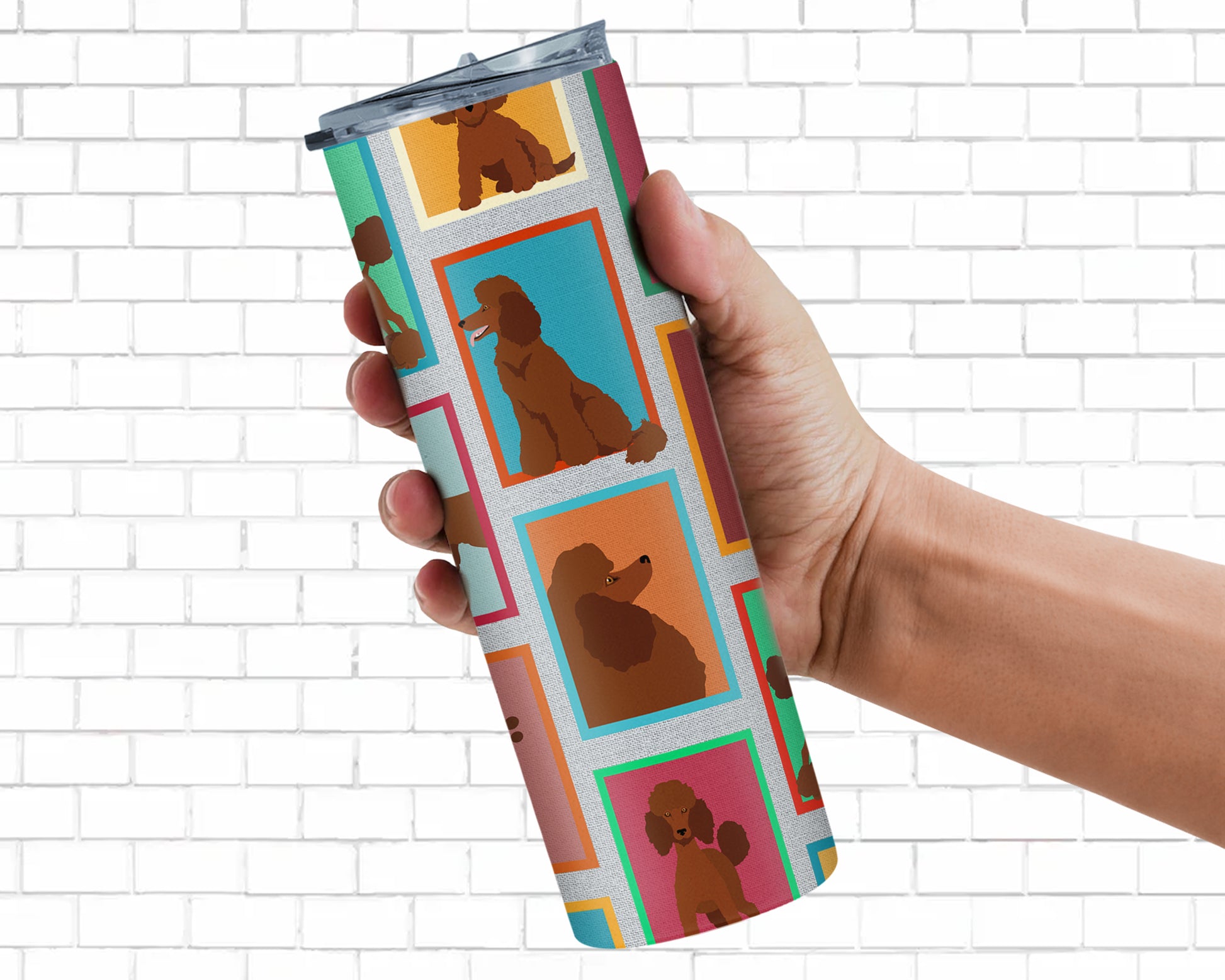 Stainless Steel Skinny Tumbler featuring breed specific Poodle artwork. Elevate your hydration experience with our Decorative Stainless Steel 20 oz Skinny Tumbler from Caroline's Treasures. This vacuum-insulated, double-walled travel mug is designed to keep your beverages hot or cold for prolonged periods, making it perfect for your coffee, tea, or cocktails. Its sleek and easy-to-grasp design, complemented by the vibrant, top-to-bottom artwork, makes it a stylish accessory for both men and women. Equipped with a secure, slide-open lid, you can enjoy your drinks without worrying about spills, while the included reusable metal straw contributes to reducing plastic use and promoting sustainability. Crafted with quality stainless steel, the tumbler is 100% BPA and Phthalate free, ensuring a safe, non-toxic experience with every sip. Not just functional, this skinny tumbler, complete with gift box, serves as a thoughtful gift for women, mothers, or any loved one. Enjoy your favorite beverages on the go in style, while making a positive impact on the environment. Remember, it's not just a drinkware, it's a lifestyle accessory! Please note: For optimum longevity, hand washing is recommended.
