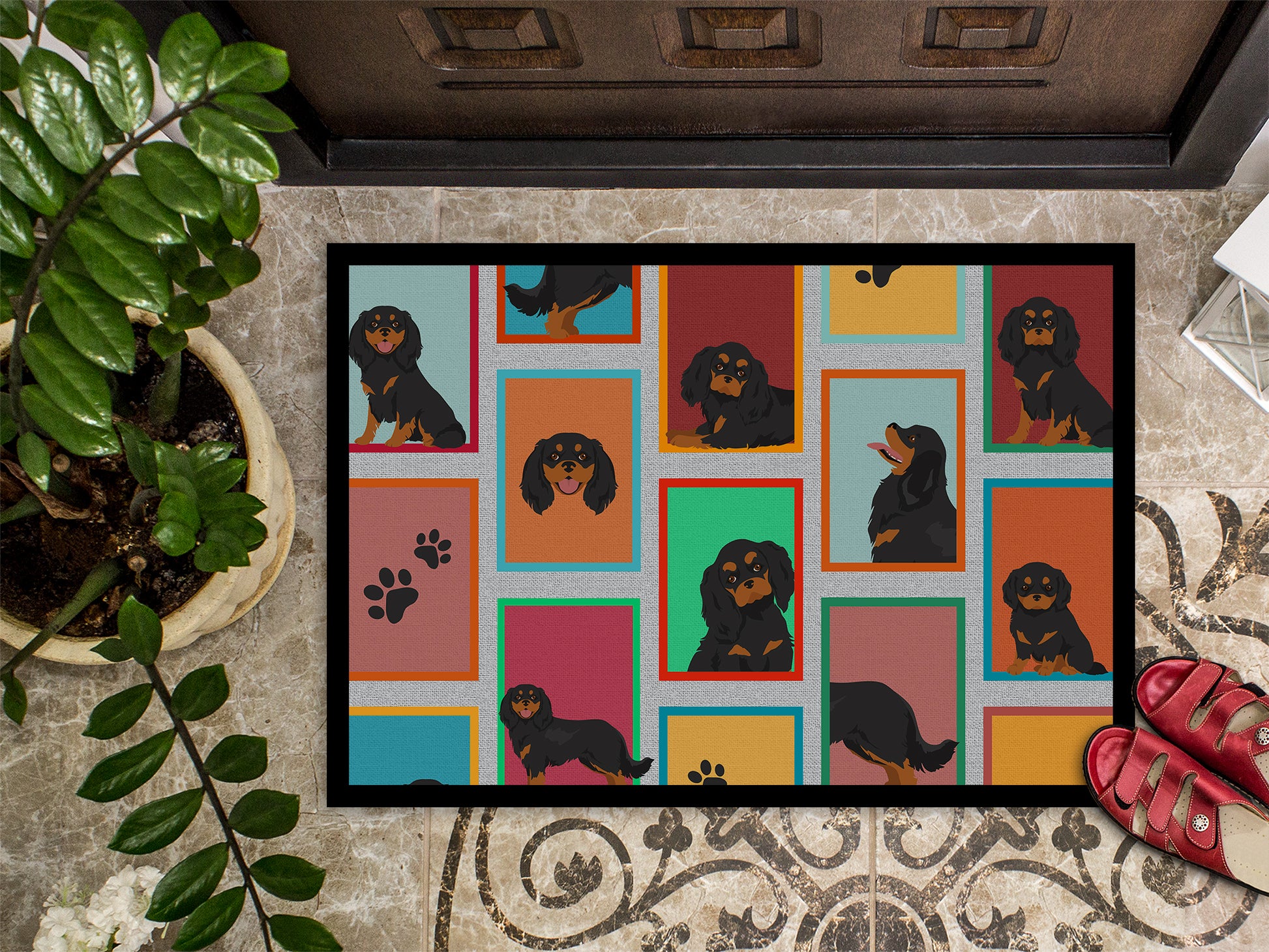 Lots of Black and Tan Cavalier King Charles Spaniel Doormat