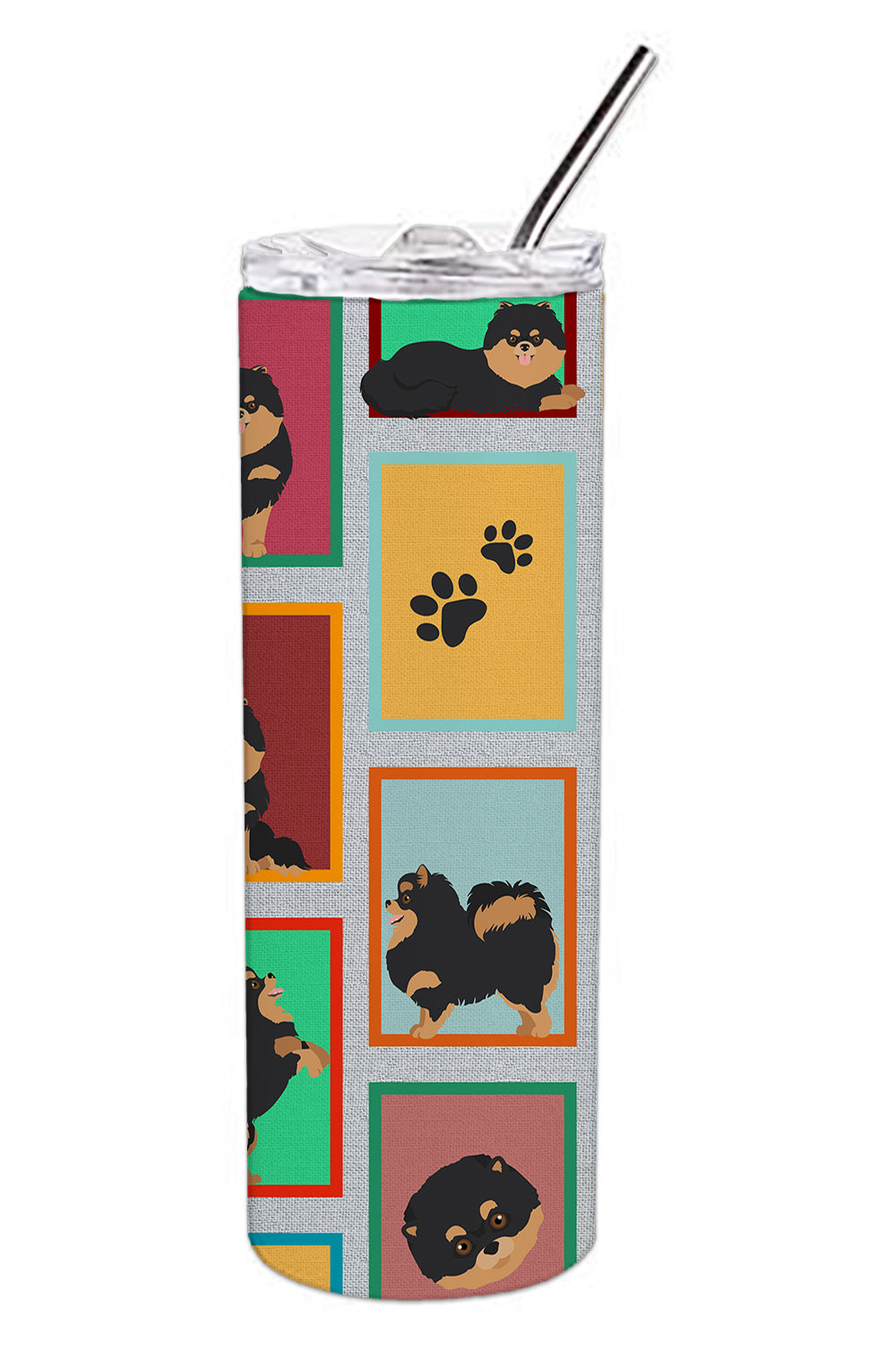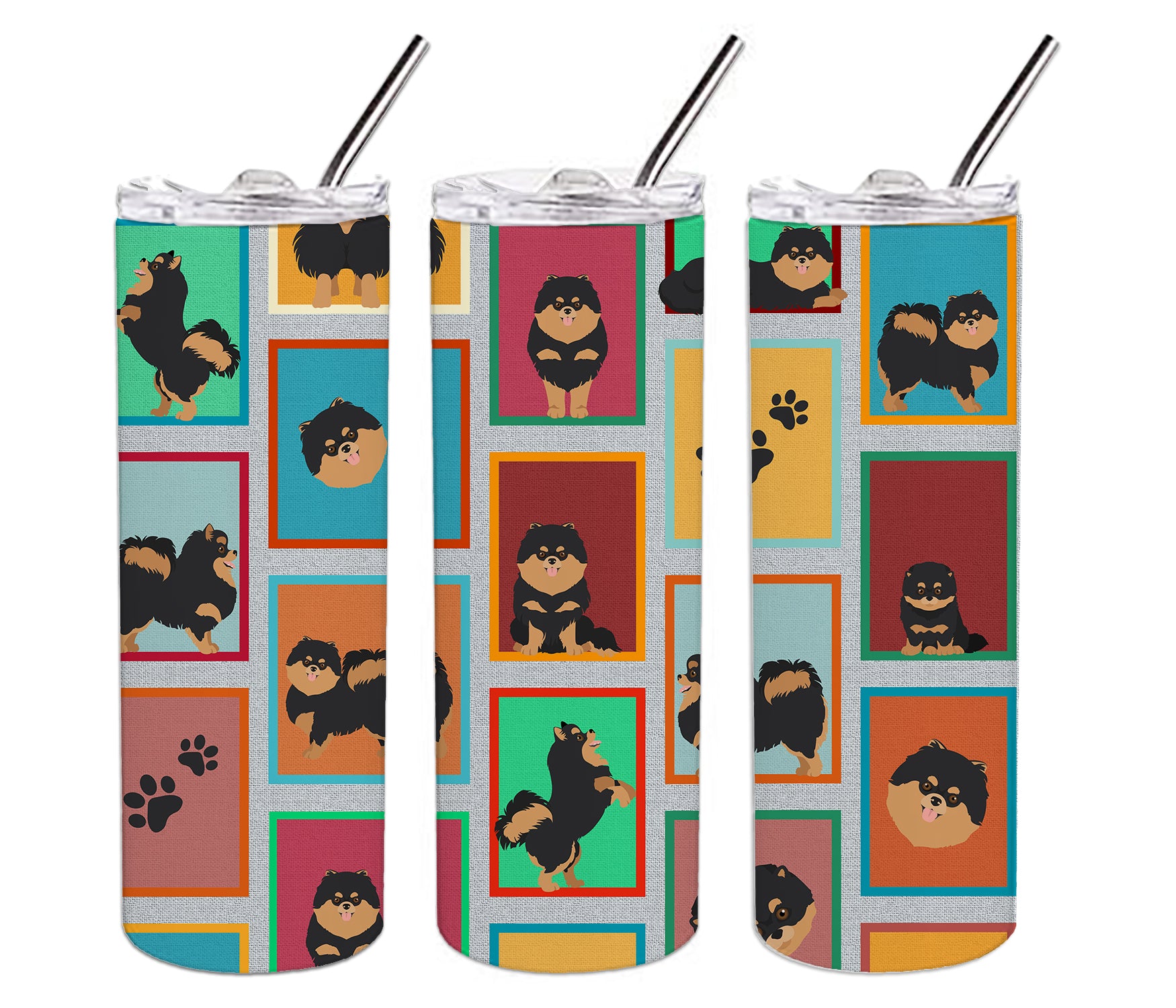 Lots of Black and Tan Pomeranian Stainless Steel Skinny Tumbler