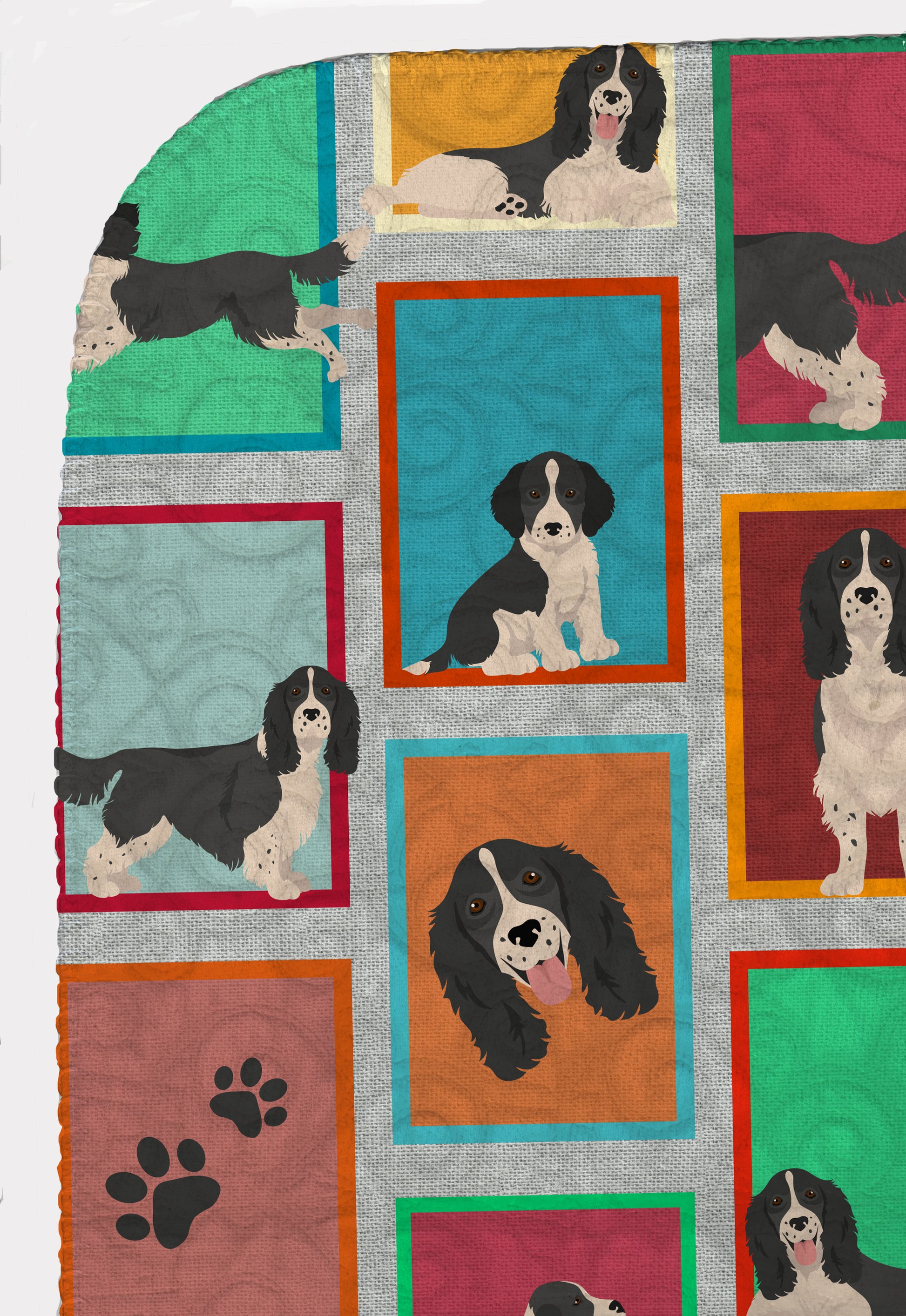 Lots of Black and White English Springer Spaniel Quilted Blanket 50x60