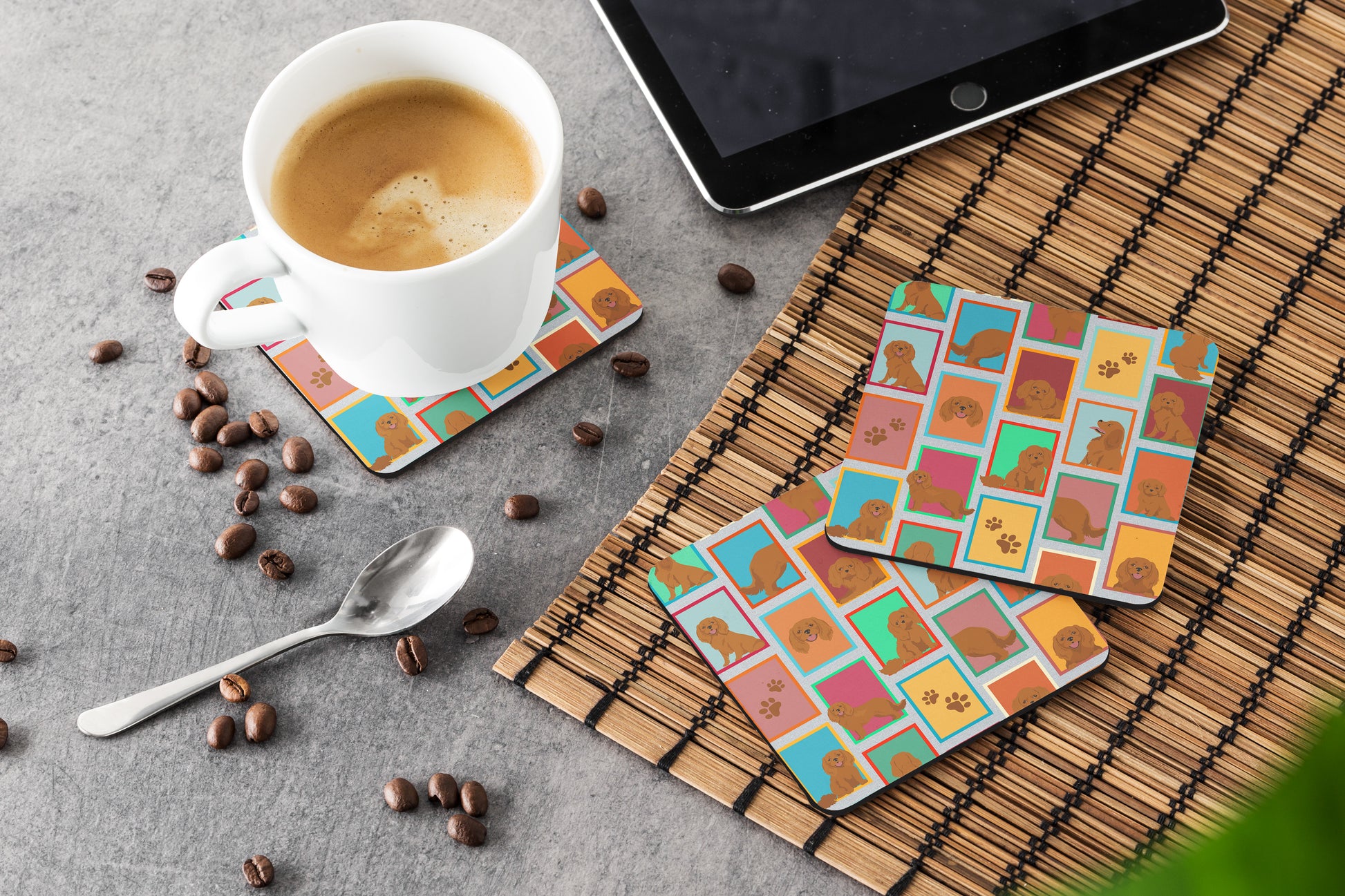 Lots of Ruby Cavalier Spaniel Foam Coasters
