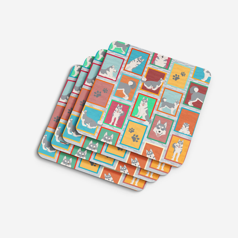 Foam Coasters featuring breed specific Siberian Husky artwork. Presenting our Set of 4 Foam Coasters, a stylish and practical addition to your table setting. Each square coaster, measuring 3 1/2 inches by 3 1/2 inches, is perfectly sized to accommodate various drinkware, from coffee mugs to tumblers. These coasters stand out with their full-color artwork, permanently dyed onto the material for a vibrant and fade-resistant finish. They're not just functional, they're a fashionable statement, adding a touch of flair to any gathering or event. Our foam coasters serve a dual purpose - they protect your table from water stains and are perfect for both hot and cold drinks. The material used is similar to that of our high-quality mouse pads, ensuring durability and heat resistance. These coasters are easy to maintain - simply wash them in the top of your dishwasher and lay flat to dry. The design won't come off, ensuring they retain their vivid colors for years. Pair them with one of our insulated coolers or huggers for a cohesive, thoughtful gift set. Enhance your beverage experience with our Set of 4 Foam Coasters.