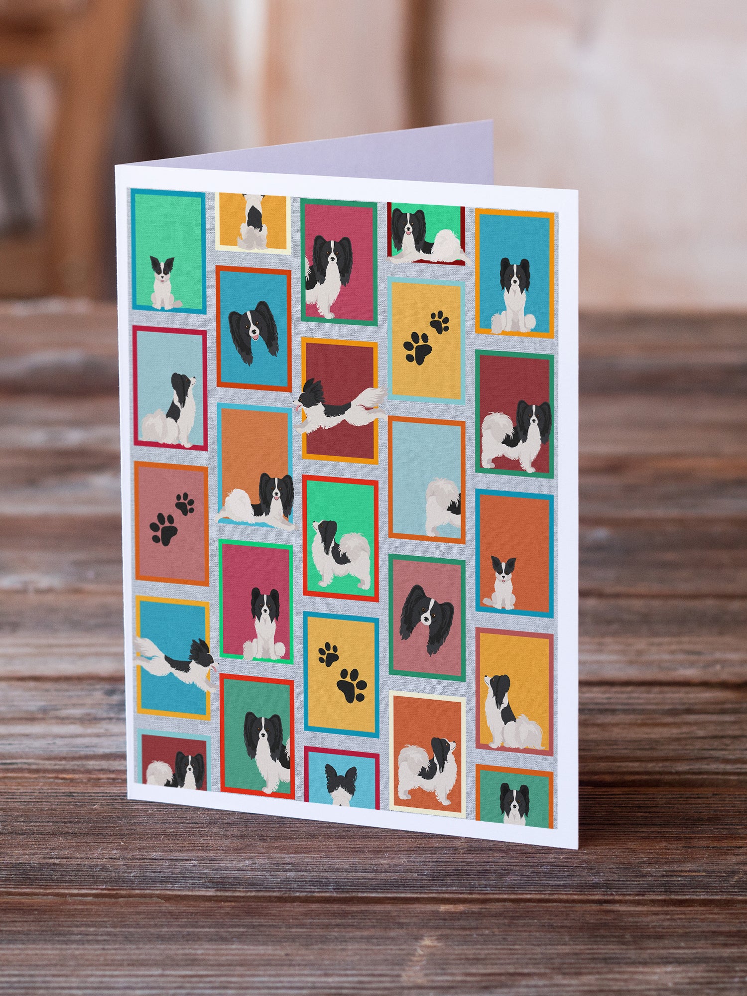Greeting Cards Pack of 8 featuring breed specific Papillon artwork. Celebrate special moments with Caroline's Treasures Printed Greeting Card Pack. This pack includes eight beautifully folded 5x7 cards, accompanied by eight matching white envelopes. With blank interiors, these cards provide ample space for your personalized messages and heartfelt holiday greetings. Each card features captivating full-color artwork, meticulously printed in our facility on high-quality 80 lb cover stock or 216 GSM. The super smooth finish of the white cards enhances the visual impact of the artwork, creating a truly stunning presentation. Designed by our talented in-house artists or licensed artists, the artwork on these cards showcases their creativity and attention to detail. From vibrant illustrations to captivating designs, each card tells its own unique story. Whether it's for birthdays, anniversaries, holidays, or any special occasion, Caroline's Treasures Greeting Card Pack is the perfect way to convey your heartfelt sentiments. Share joy, love, and warm wishes with these exquisite cards and make every moment unforgettable.