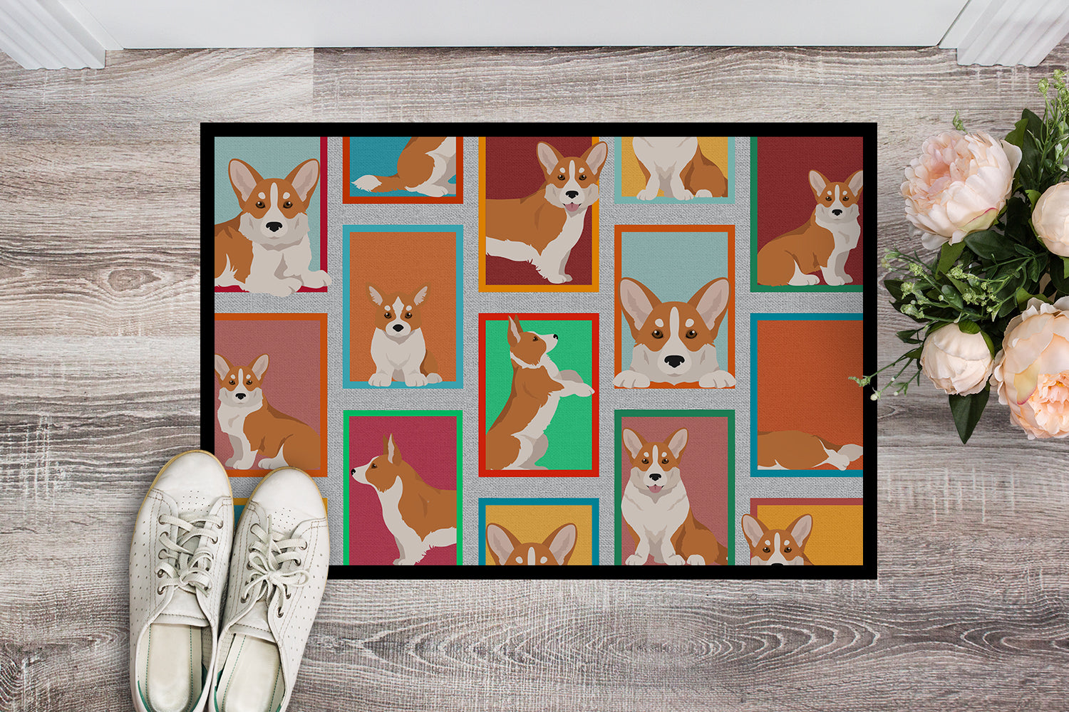 Doormat featuring breed specific Corgi artwork. Welcome your guests in style with our Artwork Door Mat, designed to withstand almost any weather condition. This mat, measuring approximately 24 by 36 inches, is held together by durable black binding tape. Its top layer, composed of polyester felt, is dyed with the eye-catching image you see on the mat. A few layers below provide the mat with stability, while its rubber bottom is stamped to help prevent slipping and ensures safety. Our mat works wonderfully as both an indoor or outdoor door mat. For cleaning, simply hose it off with water or use a power washer - no need for any cleaner that produces suds. Avoid scrubbing with a brush, instead, opt for the vacuum on floor setting. Designed manufactured and printed in the USA, this mat is a perfect addition to your porch, outdoor kitchen, entryway, or any indoor space. Its unique design makes it a charming decorative rug that greets your guests and adds a stylish touch to your home decor.