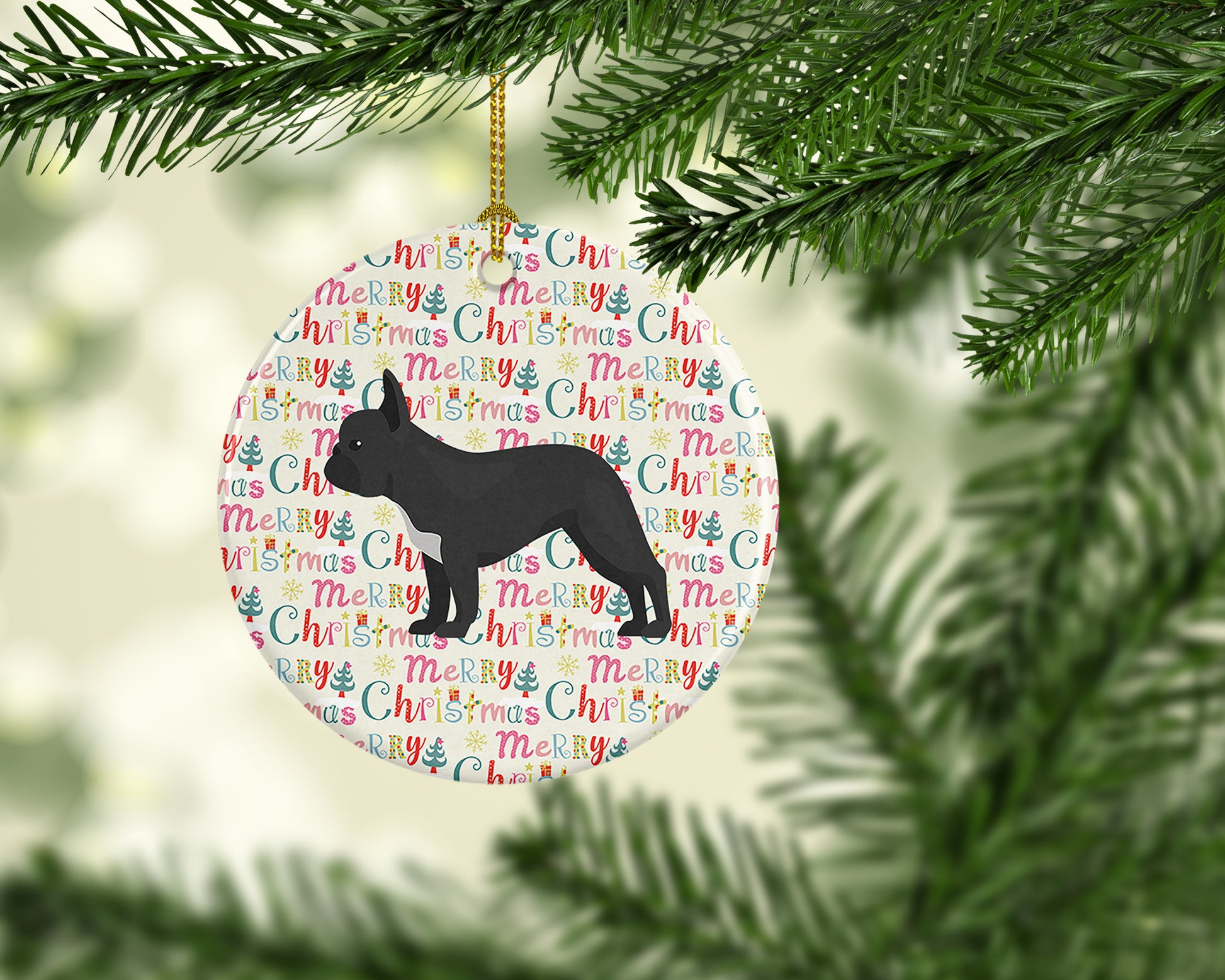 Ceramic Ornament featuring breed specific French Bulldog artwork. Celebrate Christmas with this Christmas Ornament. This Ceramic Ornament is from Caroline's Treasures collection Merry Christmas. Add a touch of personalized charm to your Christmas tree this holiday season with our Ceramic Ornament. Measuring 2.8125 inches in diameter, this round porcelain ornament beautifully reflects your festive lights, enhancing your holiday decor. The gloss surface sets off the vibrant, full-color artwork contributed by one of our talented artists, bringing a pop of color and joy to your tree. This Ceramic Ornament doesn't stop at being merely decorative. The white back is designed for personalization. Write a heartfelt message, mark a special year, or inscribe a date with a paint pen or a permanent marker to create a treasured memento. Please ensure you allow any personalization to dry thoroughly before handling to maintain the pristine finish. Included with the ornament is a delicate gold cord for easy hanging. Made in the USA, this Ceramic Ornament makes an exceptional gift for a pet sitter, teacher, family member, or anyone you wish to share a little Christmas magic with. With its blend of style, charm, and personal touch, it's a meaningful addition to any Christmas tree. This Ornament is from Caroline's Treasures Dogs category of products.